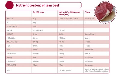Las investigaciones han demostrado que el ser humano necesita de la proteína animal para garantizar un nivel apropiado de aminoácidos y asimismo sintetizar proteínas. Se conoce que hay 29 cortes de carne de res que cumplen con los requisitos de etiquetado "magro" o "extra magro" (5 g menos de grasa y 2 g menos de grasa saturada), siendo estos cortes una excelente opción para adicionar en la dieta (Hackney et al., 2019). Adicionalmente, las razones para comprender que la carne es fundamental en nuestra dieta es su valor de nutricional pues una porción de 3 onzas de carne magra proporciona aproximadamente el 10% de las calorías diarias recomendadas, el 37% de vitamina B12, el 33% de zinc, el 25% de niacina, más del 10% de hierro, riboflavina y otros nutrientes recomendados (Hackney et al., 2019). Cabe resaltar que la carne proporciona hierro hemo, el cual es más biodisponible que el hierro de origen vegetal no hemo.